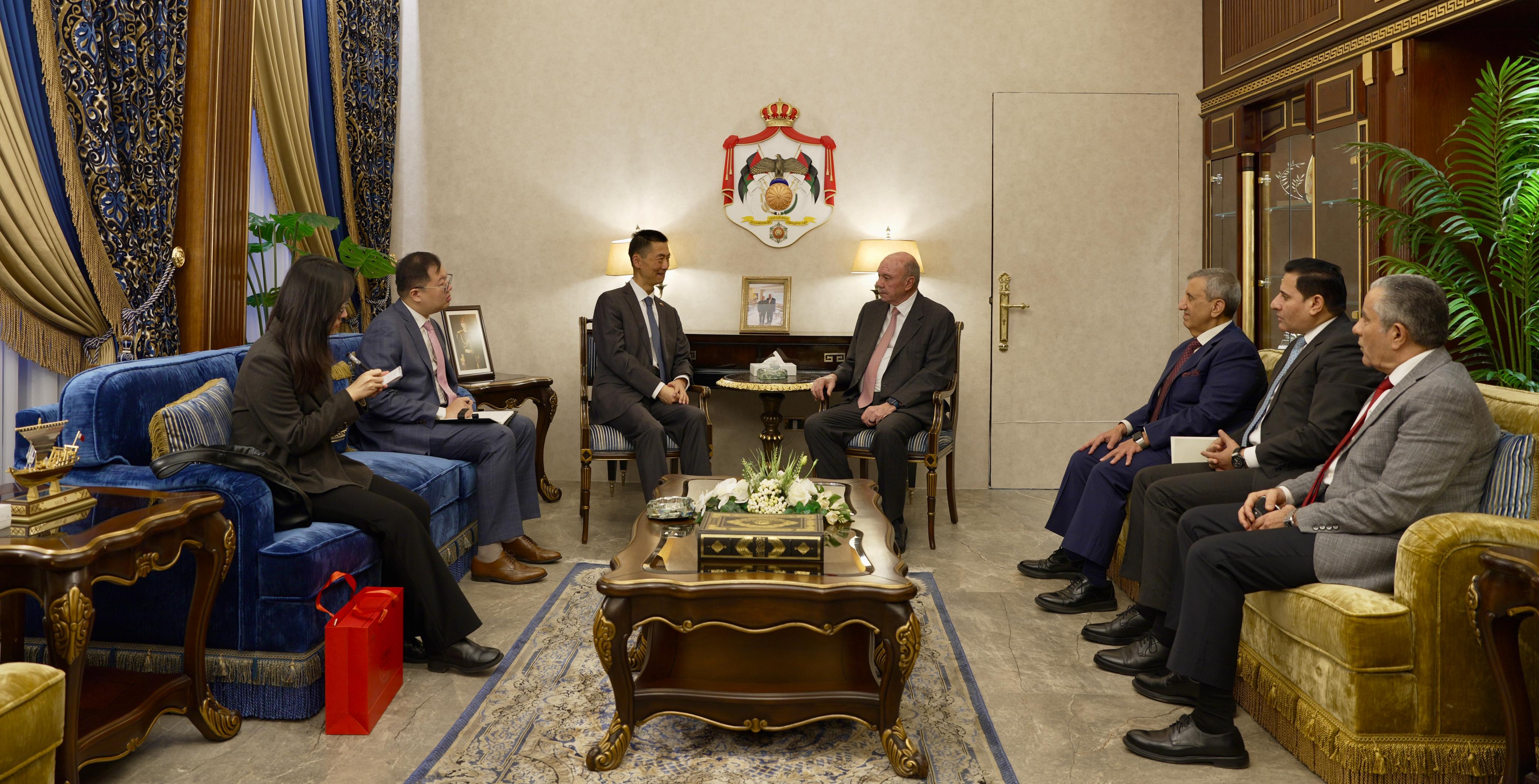 بدوره أكد السفير الصيني تقدير بلاده للجهود الكبيرة ، التي يقوم بها جلالة الملك عبدالله الثاني ، والتي تستهدف إحلال السلام في المنطقة وانهاء صراعاتها وفق الأطر السياسية والحوار المسؤول ، وسعي جلالته المتواصل من اجل حماية السلام والاستقرار الإقليميين .