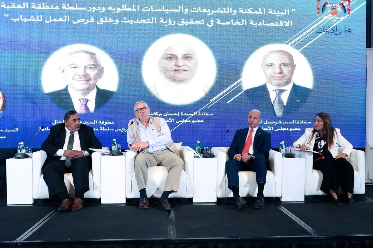 عقد أعضاء مجلس الأعيان في العقبة، العين شرحبيل ماضي والعين نسيمة الفاخري، جلسة حوارية موسعة تناولت محاور رؤية التحديث الاقتصادي وأثرها على تعزيز فرص العمل للشباب، بمشاركة رئيس سلطة منطقة العقبة الاقتصادية الخاصة شادي رمزي المجالي، ومندوبا عن محافظ العقبة ونخبة من الخبراء والمستثمرين وممثلي المجتمع المحلي.