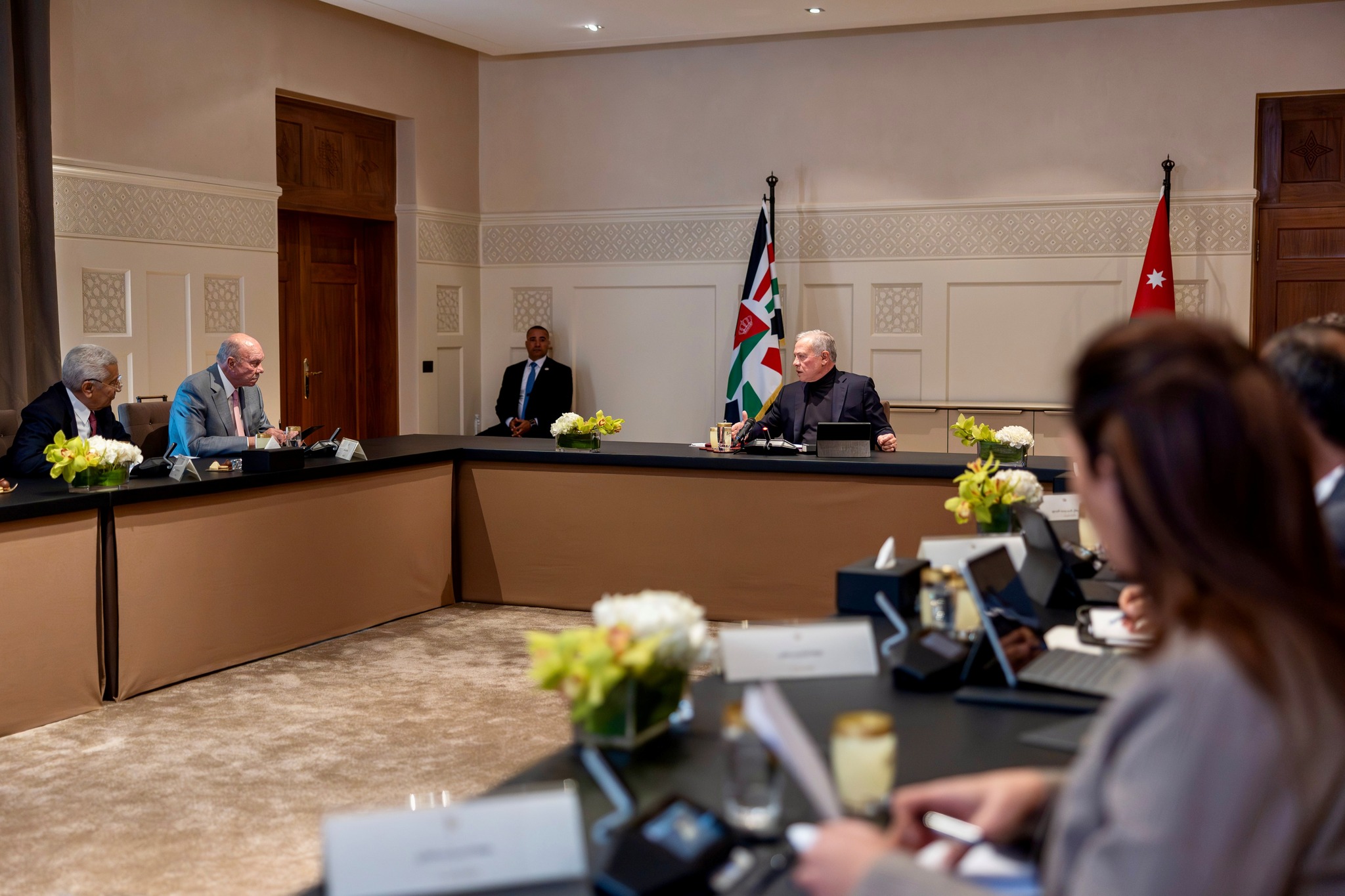 وحضر اللقاء رئيس الديوان الملكي الهاشمي يوسف حسن العيسوي، ومدير مكتب جلالة الملك، المهندس علاء البطاينة.